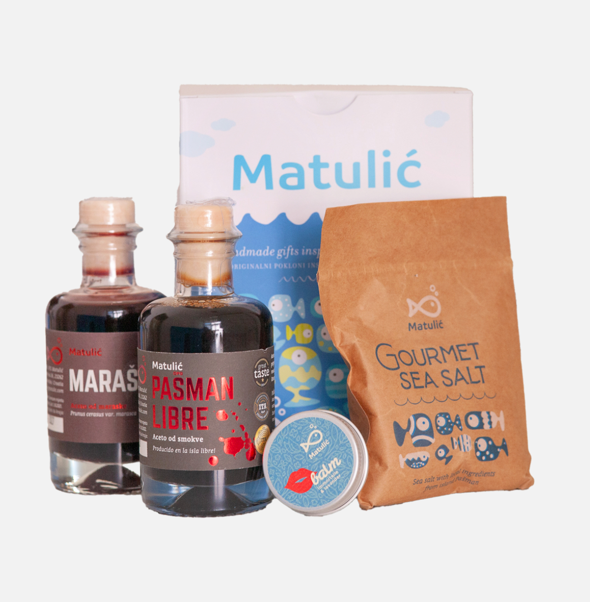 We’re excited to treat our valued guests to a special gift from OPG Matulić! Each attendee will have the opportunity to choose one of four unique gift packages, featuring handcrafted products from this renowned family-run business on the island of Pašman. From aromatic sea salts and balsamic fig vinegar to natural cosmetics and skincare, there’s a carefully curated package for everyone. Pick the one that suits you best and take home a little taste of Pašman!